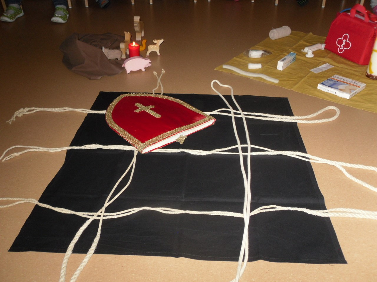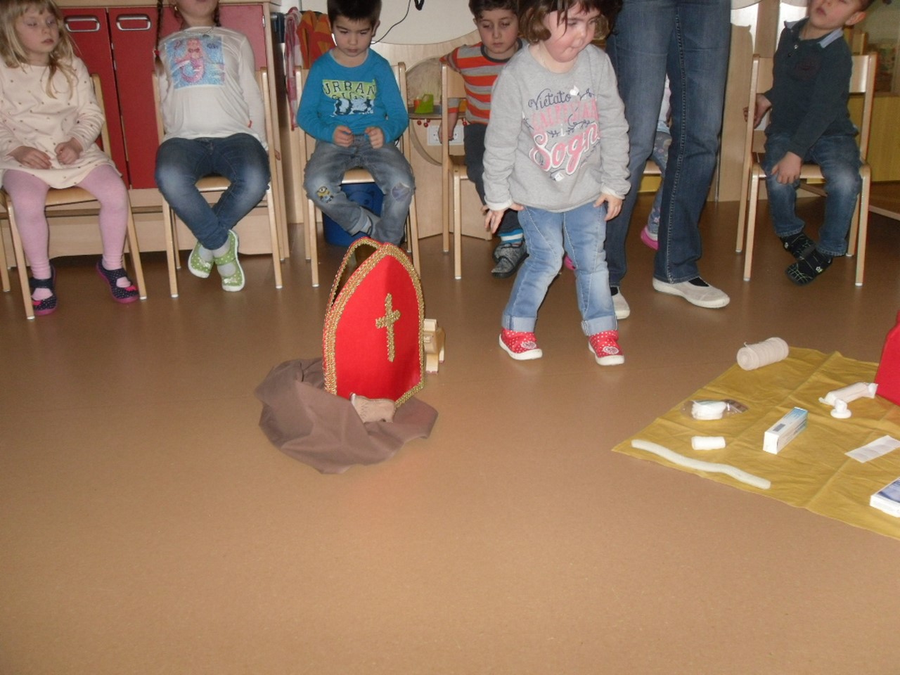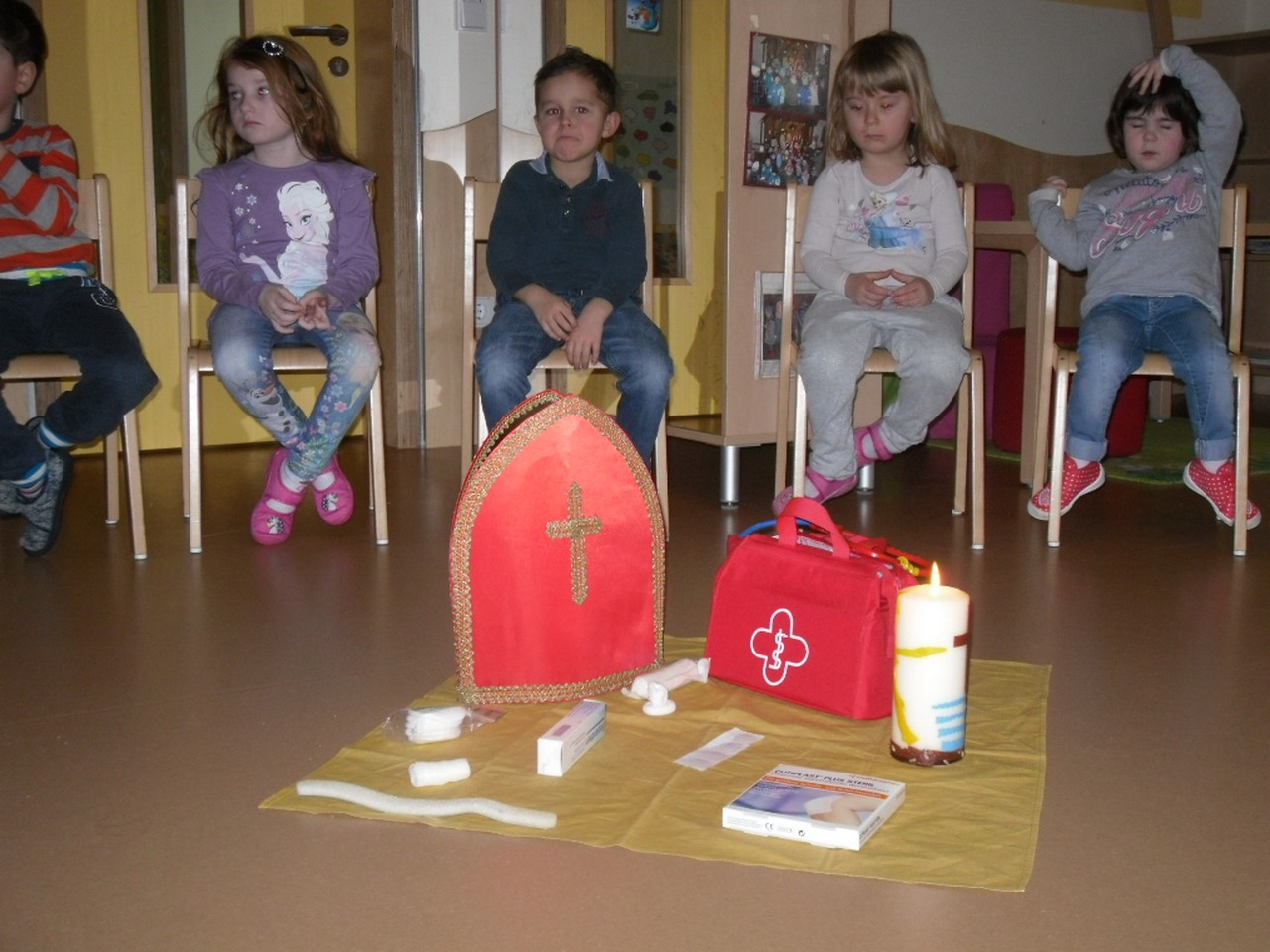 In Vorbereitung auf den Blasiussegen, den Gemeindeassistentin Claudia Nowak am Freitag, den 2. Februar 2018, im Hofheimer Kindergarten erteilte, hörten die Kinder einiges über das Leben und Wirken dieses Heiligen, der auch zu den 14 Nothelfern zählt.