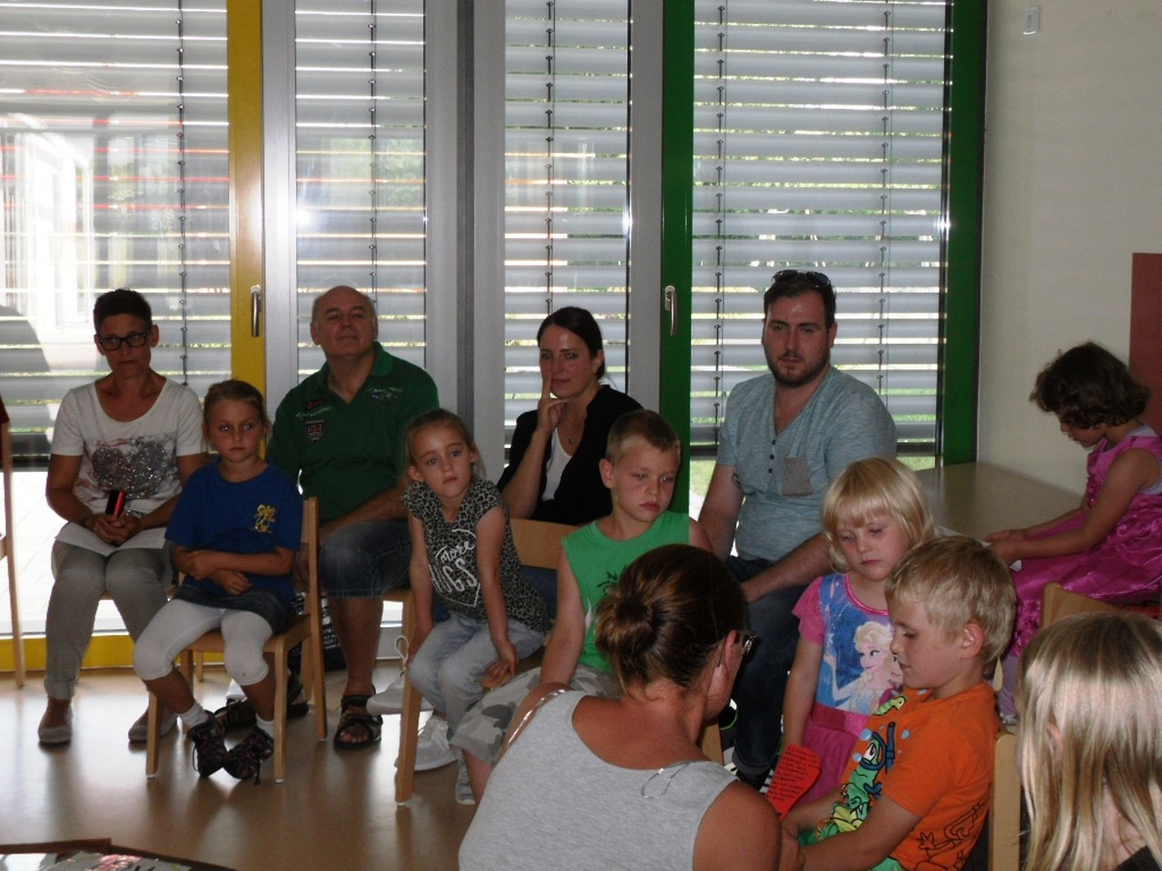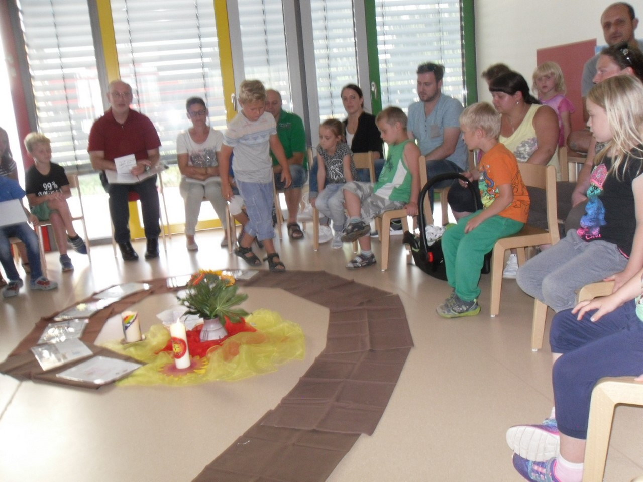 Am Donnerstag, den 28. Juli 2016, versammelten sich am frühen Abend zu Beginn des traditionellen Übernachtungsfestes die 11 Vorschulkinder mit ihren Eltern und einigen Geschwistern, sowie den Erzieherinnen und Herrn Pfarrvikar Stefan Beetz zu einem Abschiedsgottesdienst.