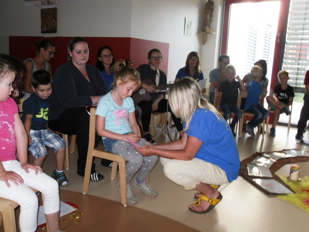 Jedem Kind persönlich hat eine seiner „Kindergärtnerinnen“ vorgelesen, was das ganz Besondere an ihm ist und was sie besonders an ihm schätzen. Dabei flossen die ersten Tränen bei Müttern und Erzieherinnen, so berührend waren diese Momente.