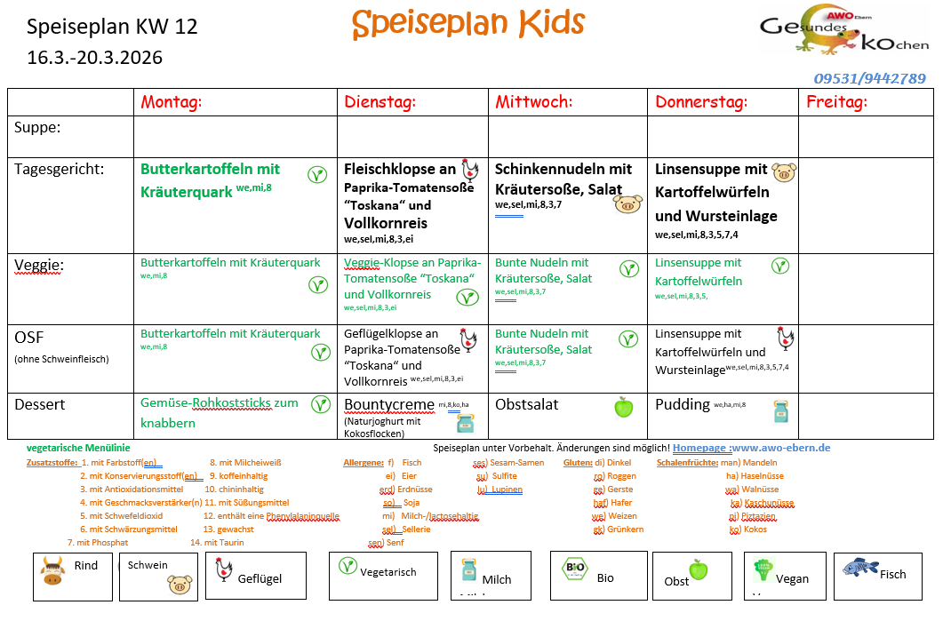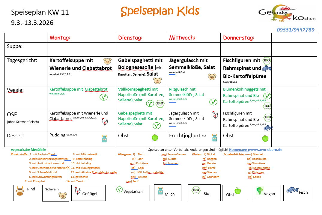 Speiseplan vom 09.03. - 20.03.2026