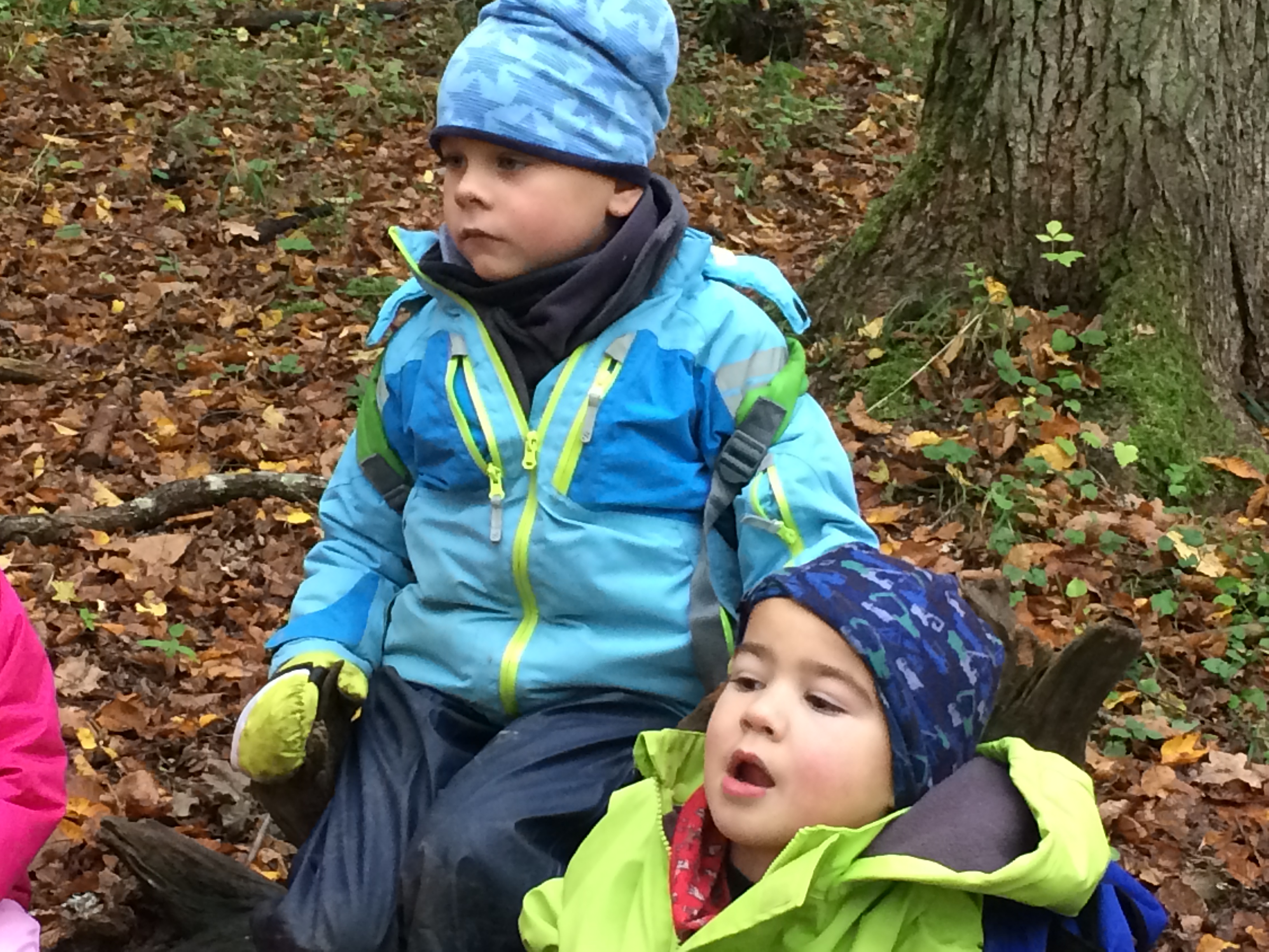 Waldwochen. Wir machen uns dazu bei Wind und Wetter jeden Morgen mit den Kindern auf den Weg, um dort den Tag zu verbringen.